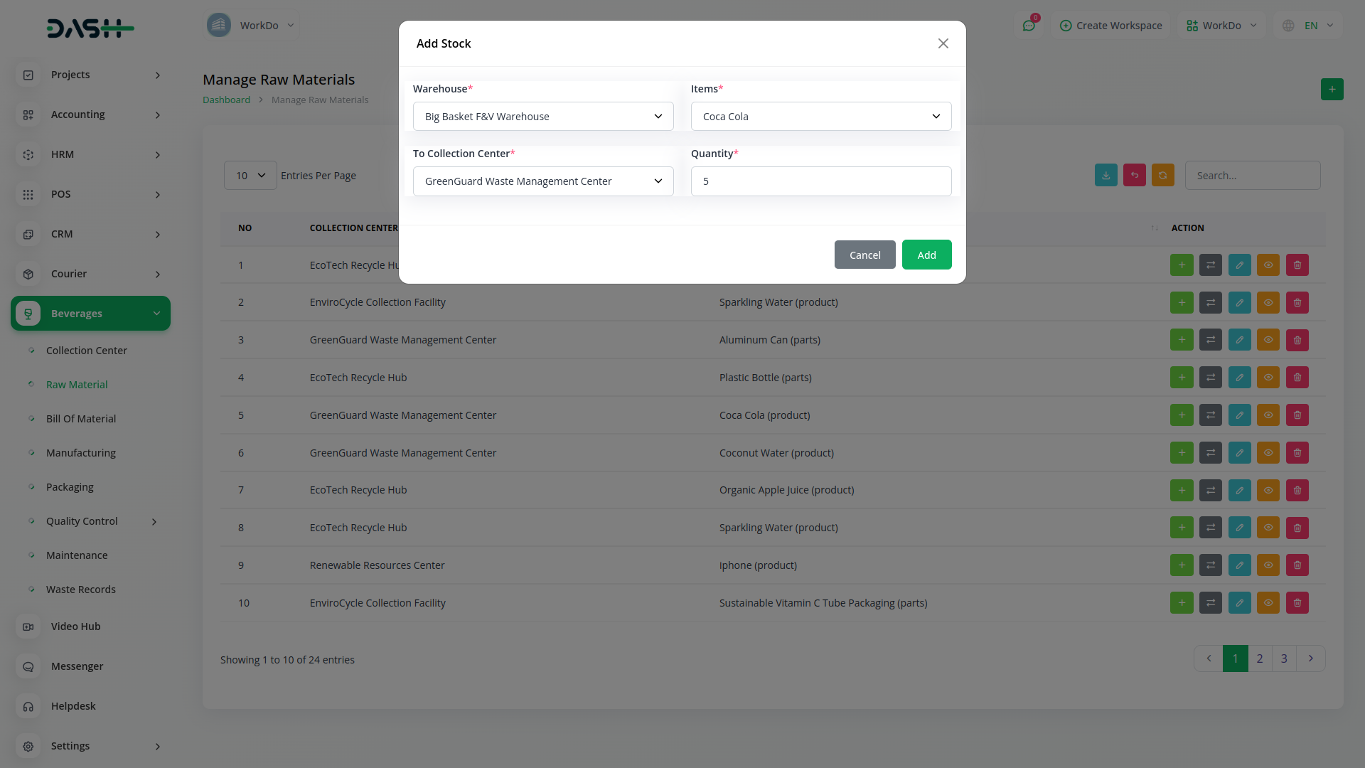 Optimize your beverage production process by efficiently managing collection centers. Dash SaaS allows you to oversee and coordinate the collection of raw materials from various sources, ensuring a seamless supply chain.