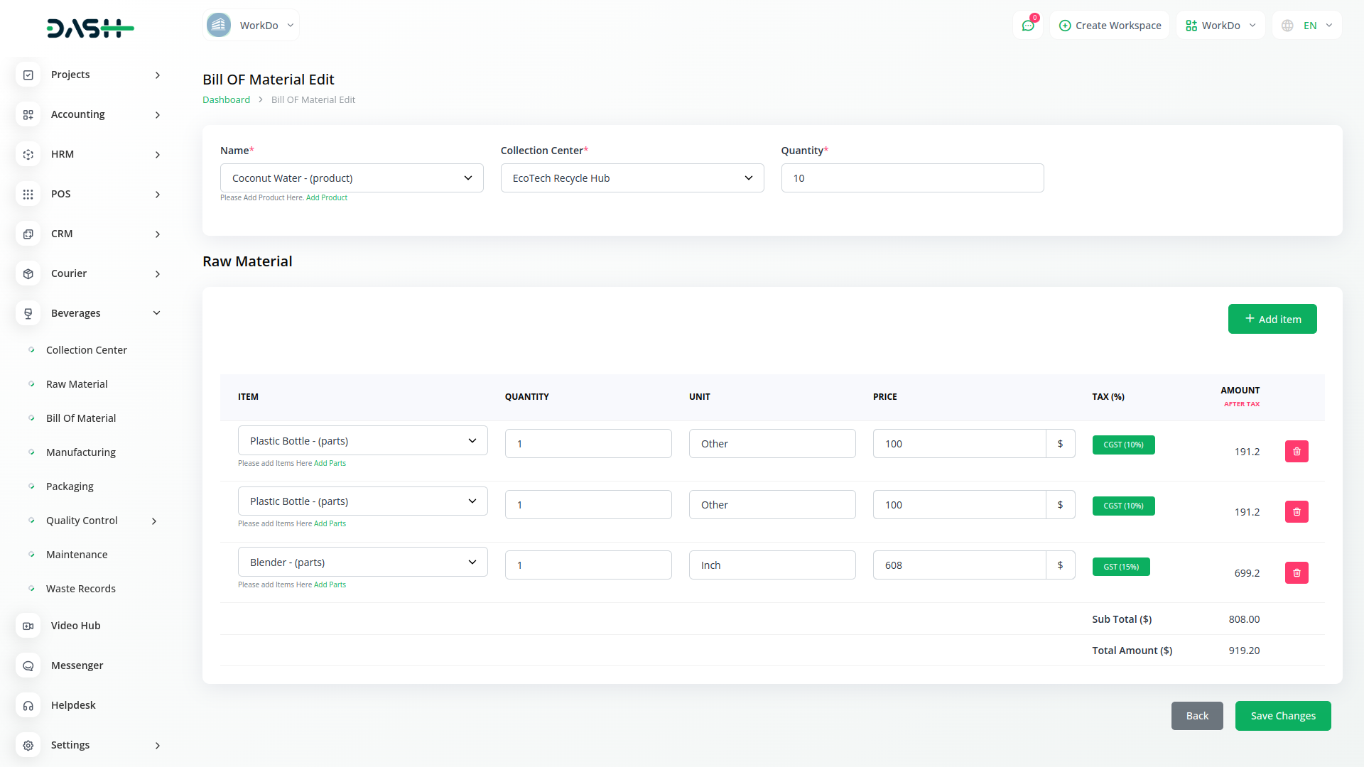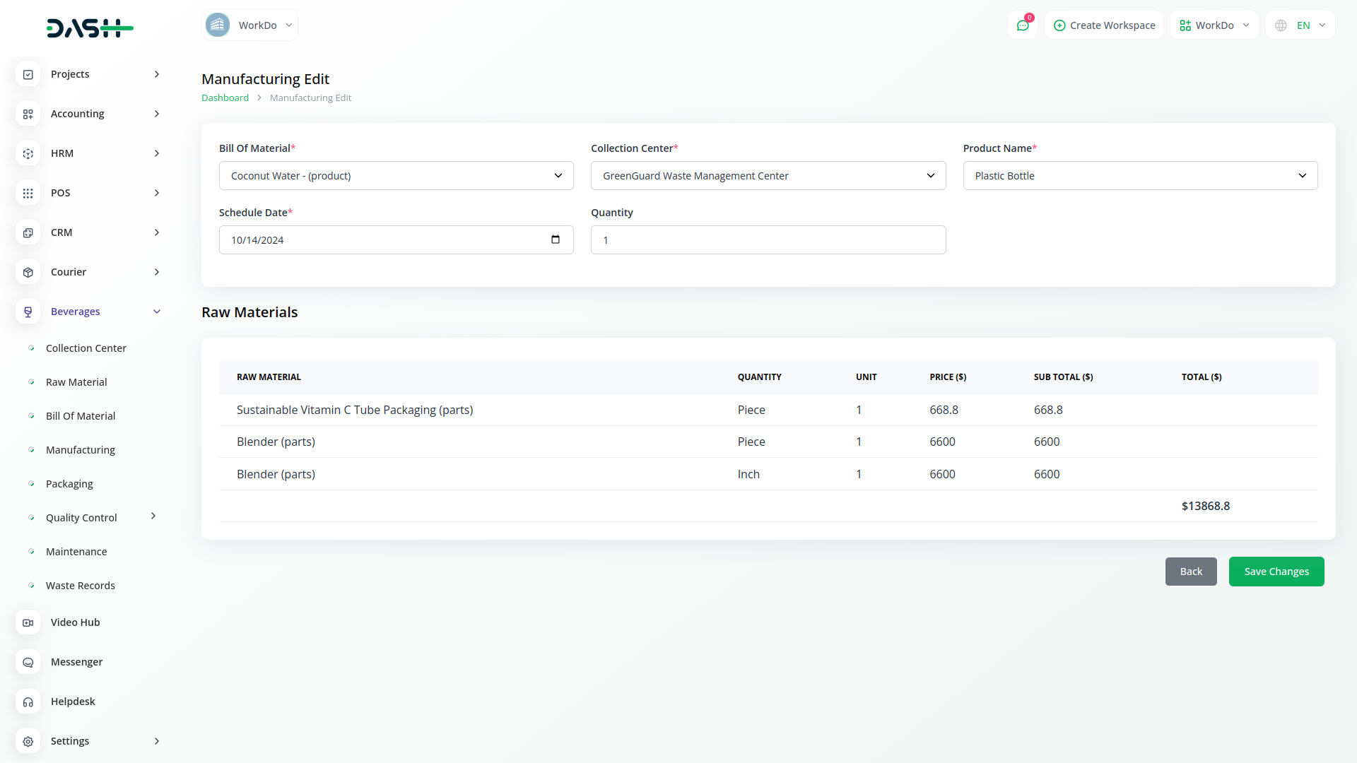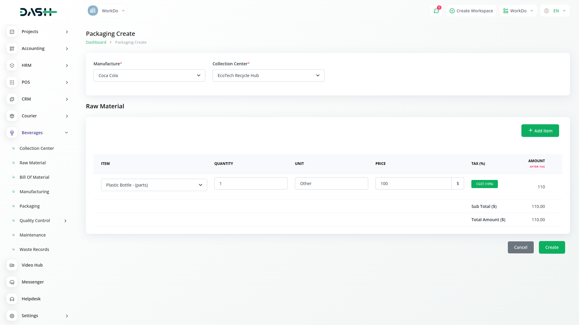 Optimize beverage production from collection to packaging with Dash SaaS. Manage raw materials, streamline manufacturing, and perfect packaging details for unparalleled efficiency and quality. Elevate your beverage business with a user-friendly interface and powerful features.